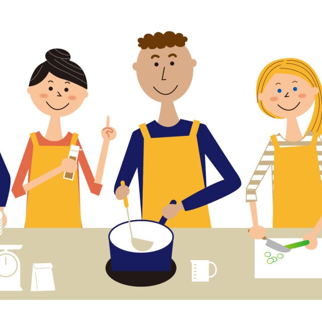 ■持ち物:エプロン、バンダナもしくは三角巾、食器用ふきん2枚、冷たいお茶のいる方は持参、マスク(調理中)
