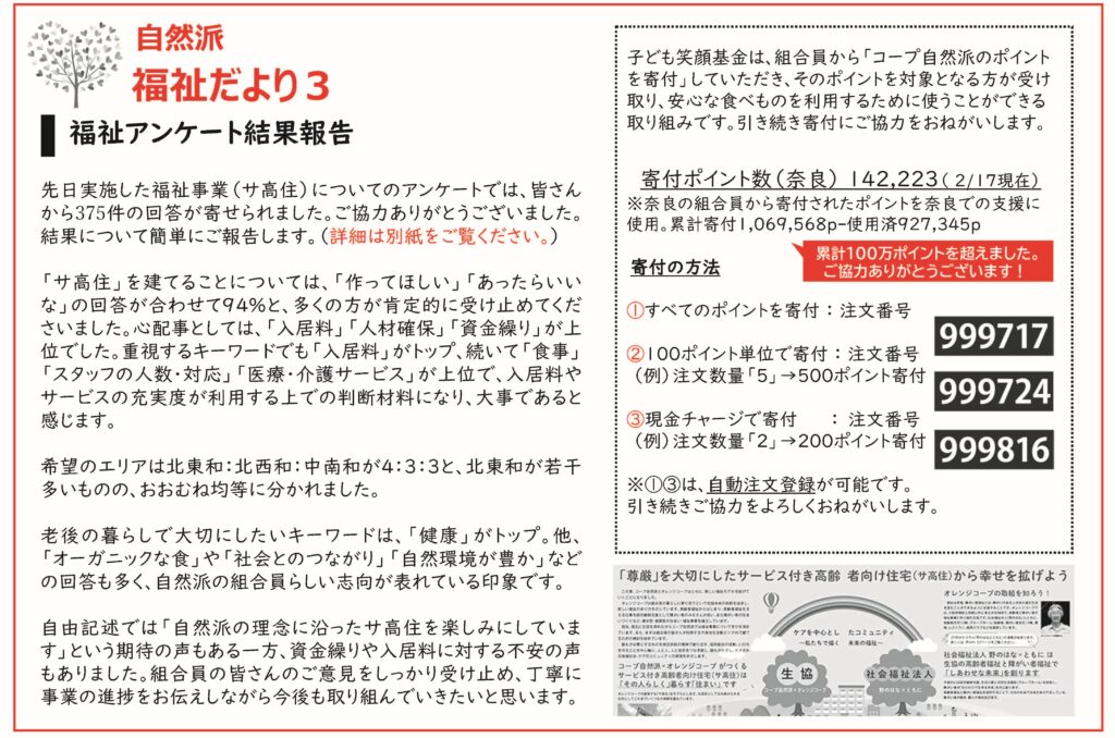 コープ自然派奈良では、福祉事業の取り組みを始めます。